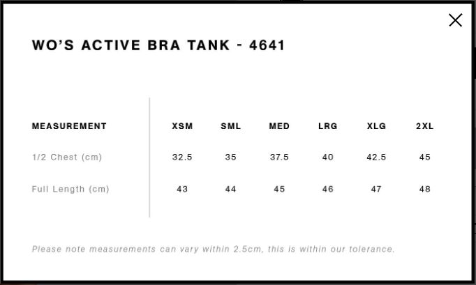 Construction - Matte finish, internal bra, removable bust cups, Mid length, moisture wicking, quick drying, high elastane content for resilience, suitable for low to medium impact activities