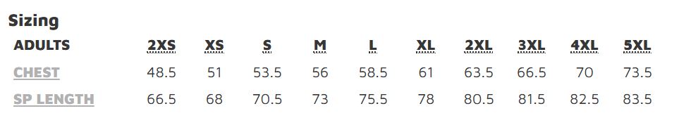 CHEST | 48.5 | 51 | 53.5 | 56 | 58.5 | 61 | 63.5 | 66.5 | 70 | 73.5 |