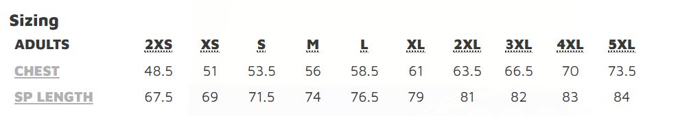 CHEST | 48.5 | 51 | 53.5 | 56 | 58.5 | 61 | 63.5 | 66.5 | 70 | 73.5 |
