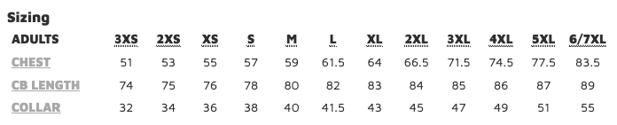 CHEST | 51 | 53 | 55 | 57 | 59 | 61.5 | 64 | 66.5 | 71.5 | 74.5 | 77.5 | 83.5 |