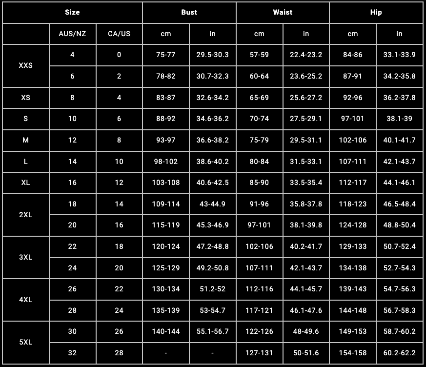 BUST (cm) 75-77 78-82 83-87 88-92 93-97 98-102 103-108 109-114 115-119 120-124 125-129